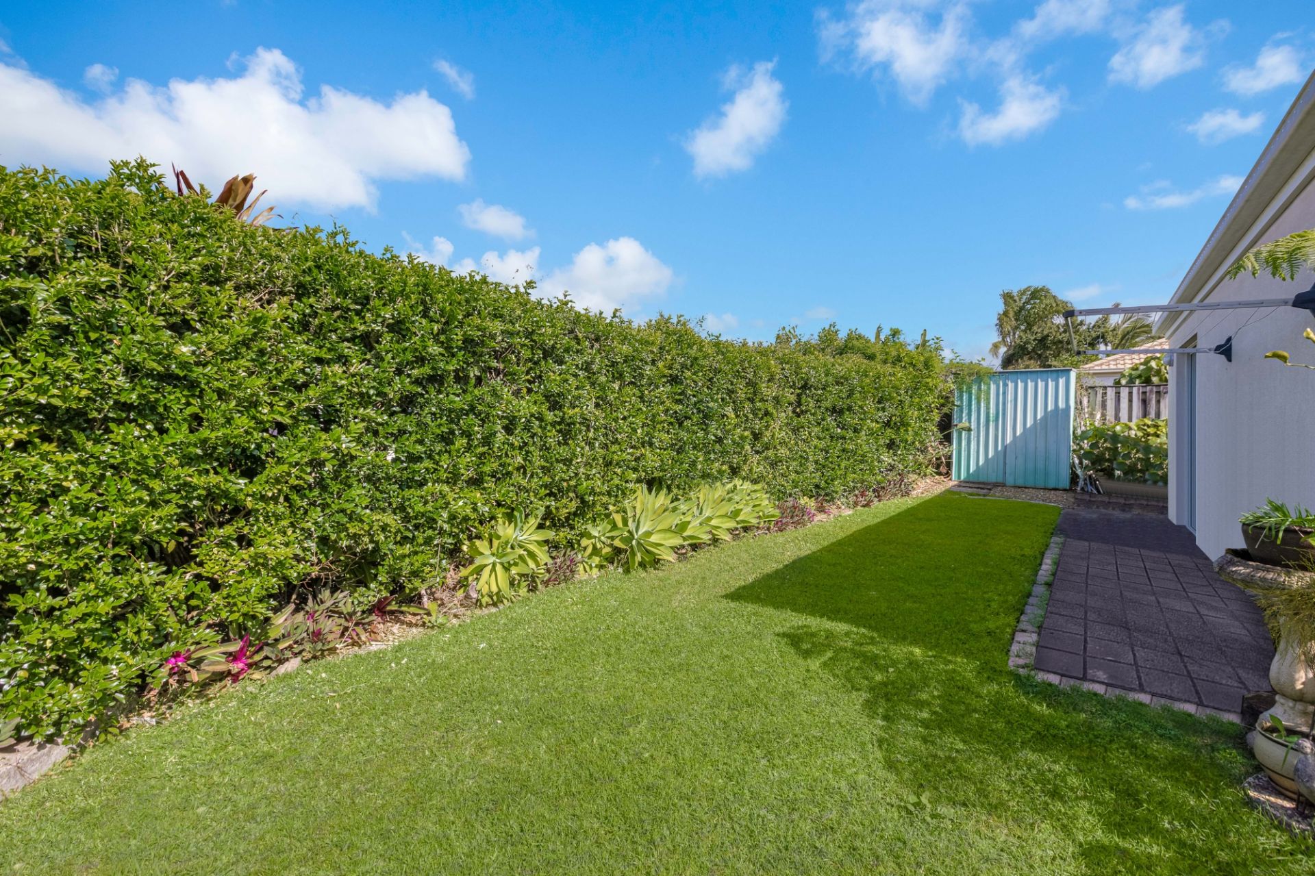 - Fully fenced rear yard with garden shed