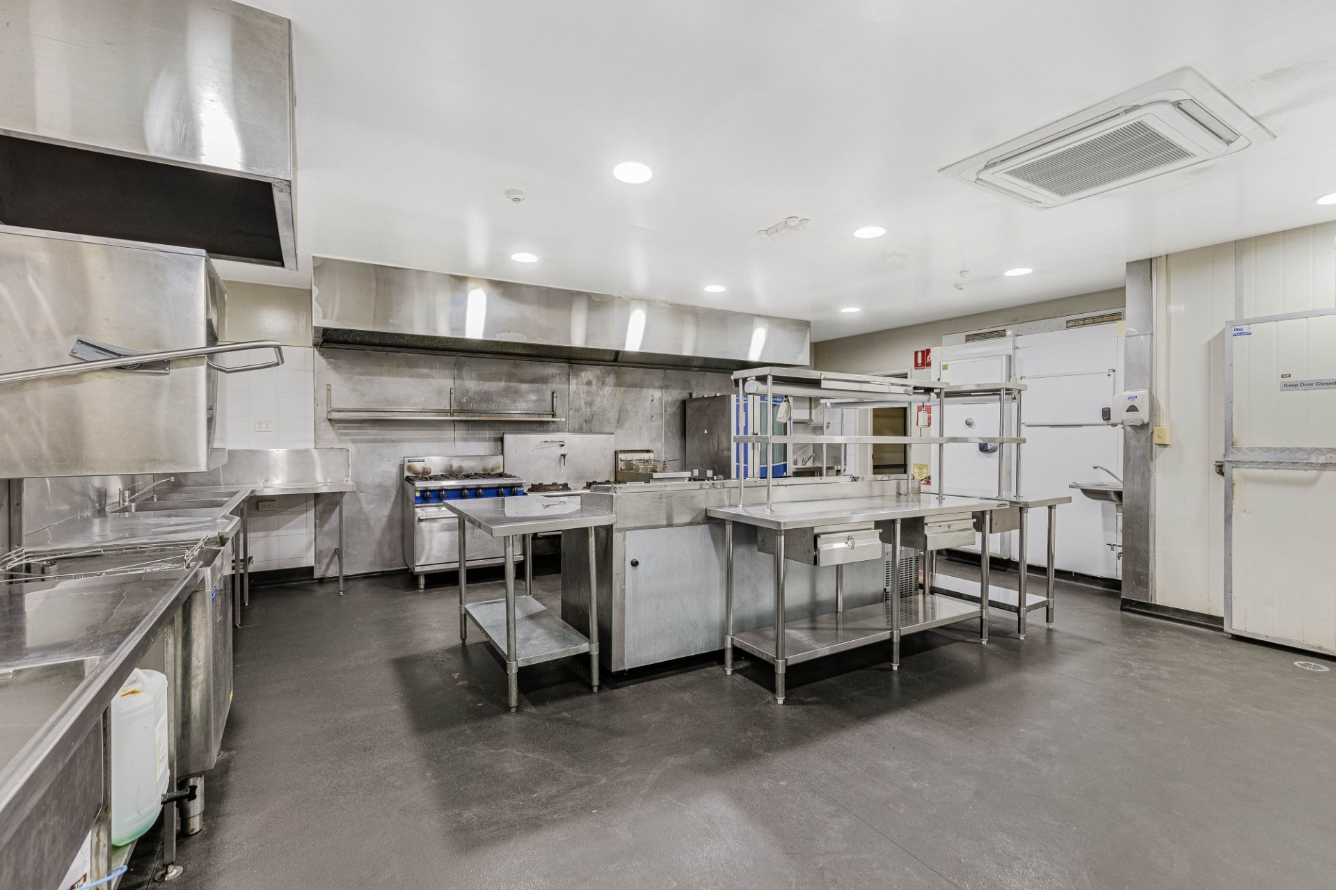 Fully equipped commercial kitchen area with all equipment included & Cool room Facilities Spacious Dining Room - Perfect for Events and Functions.