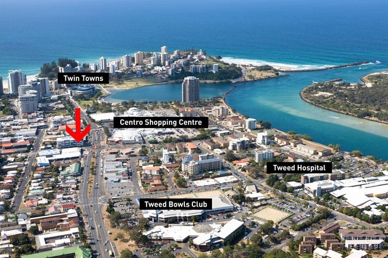 This striking landmark and Commercial Complex is located in the Tweed Heads CBD, gracing the corners of Wharf and Francis Streets.
