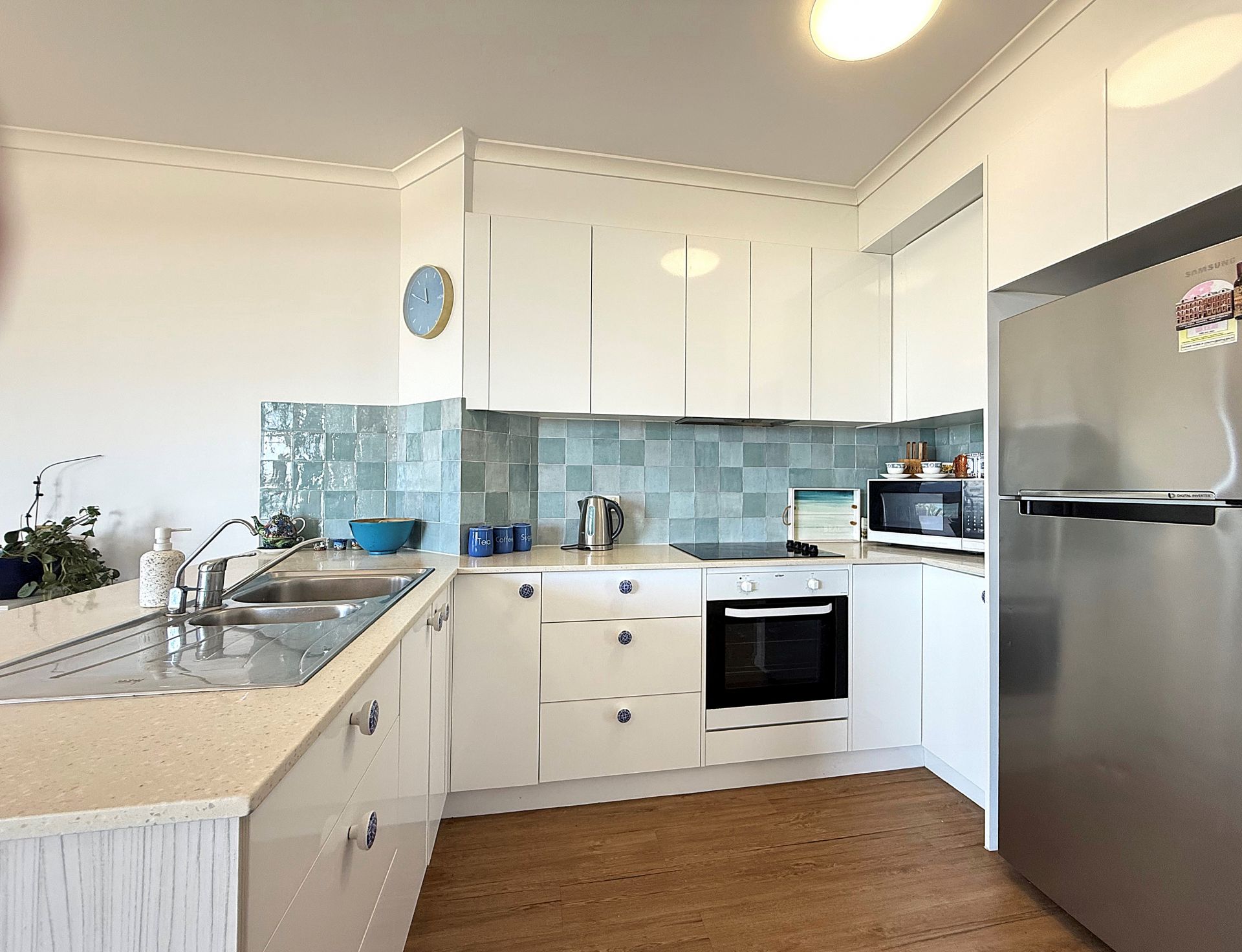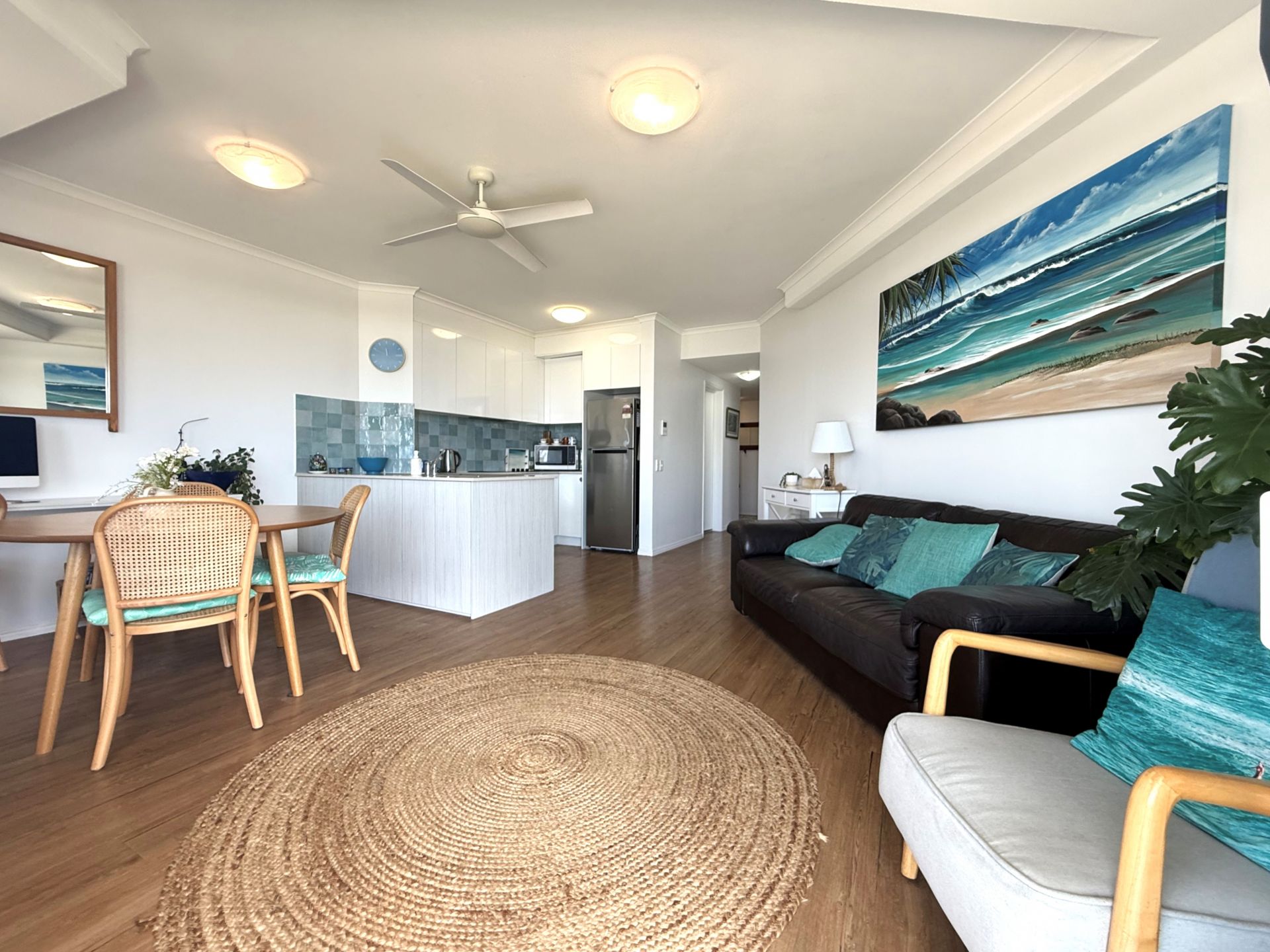 Open plan kitchen/living leading to the sweeping private balcony with commanding ocean views with cool ocean breezes.