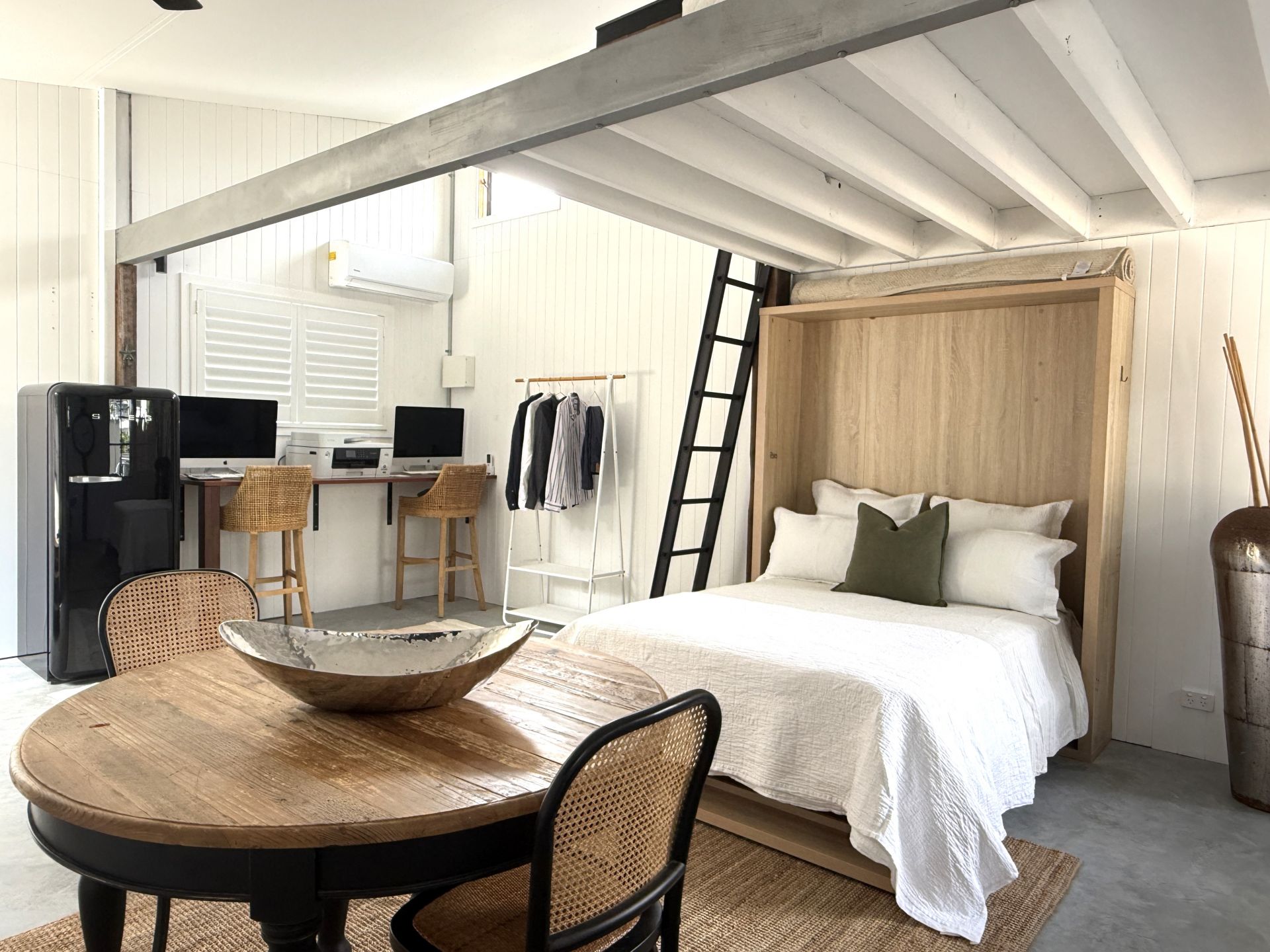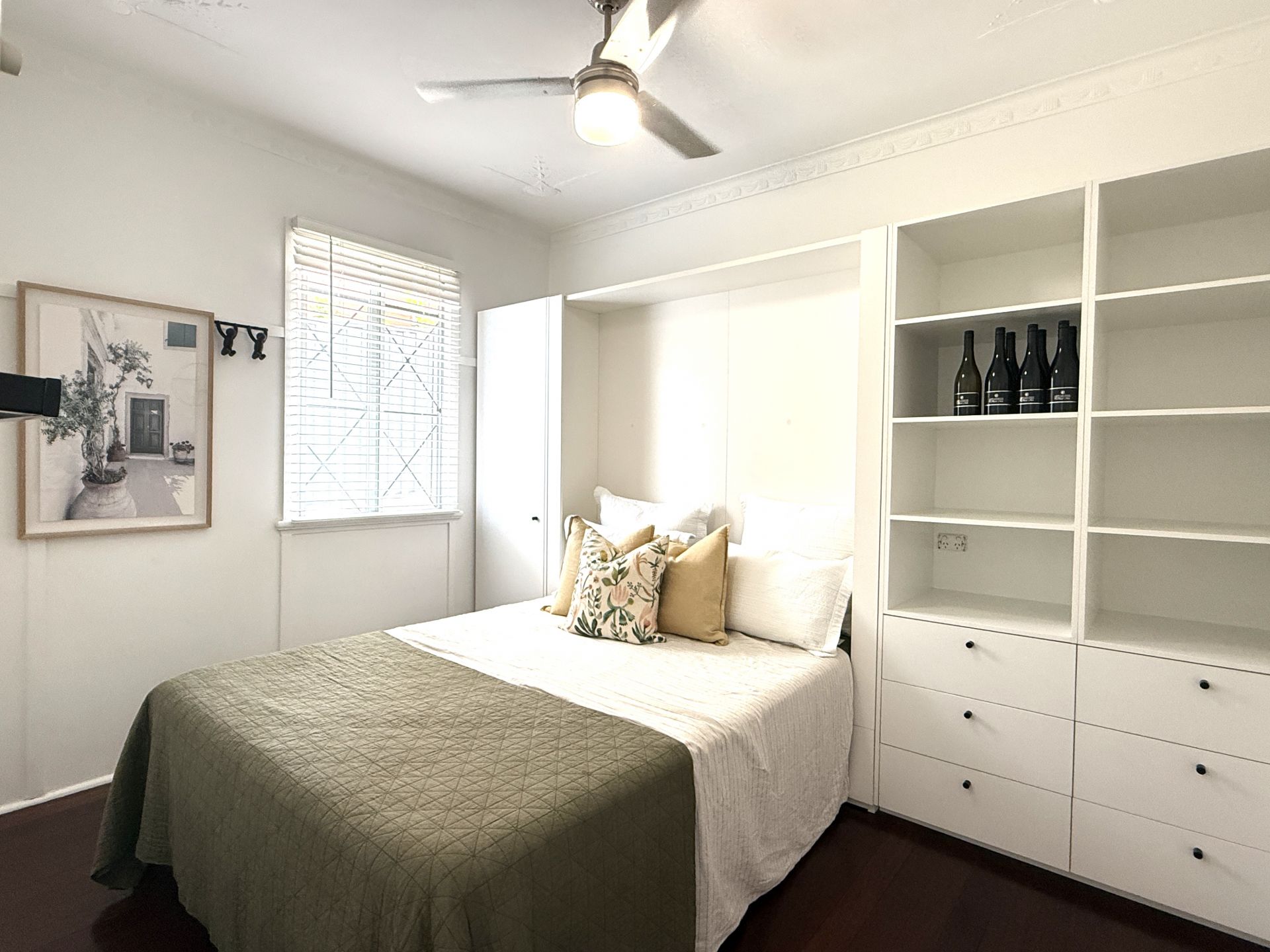 - Two generously sized bedrooms with built in robes. One bedroom includes a built in Murphy bed offering flexibility for guests or an ideal work from home setup