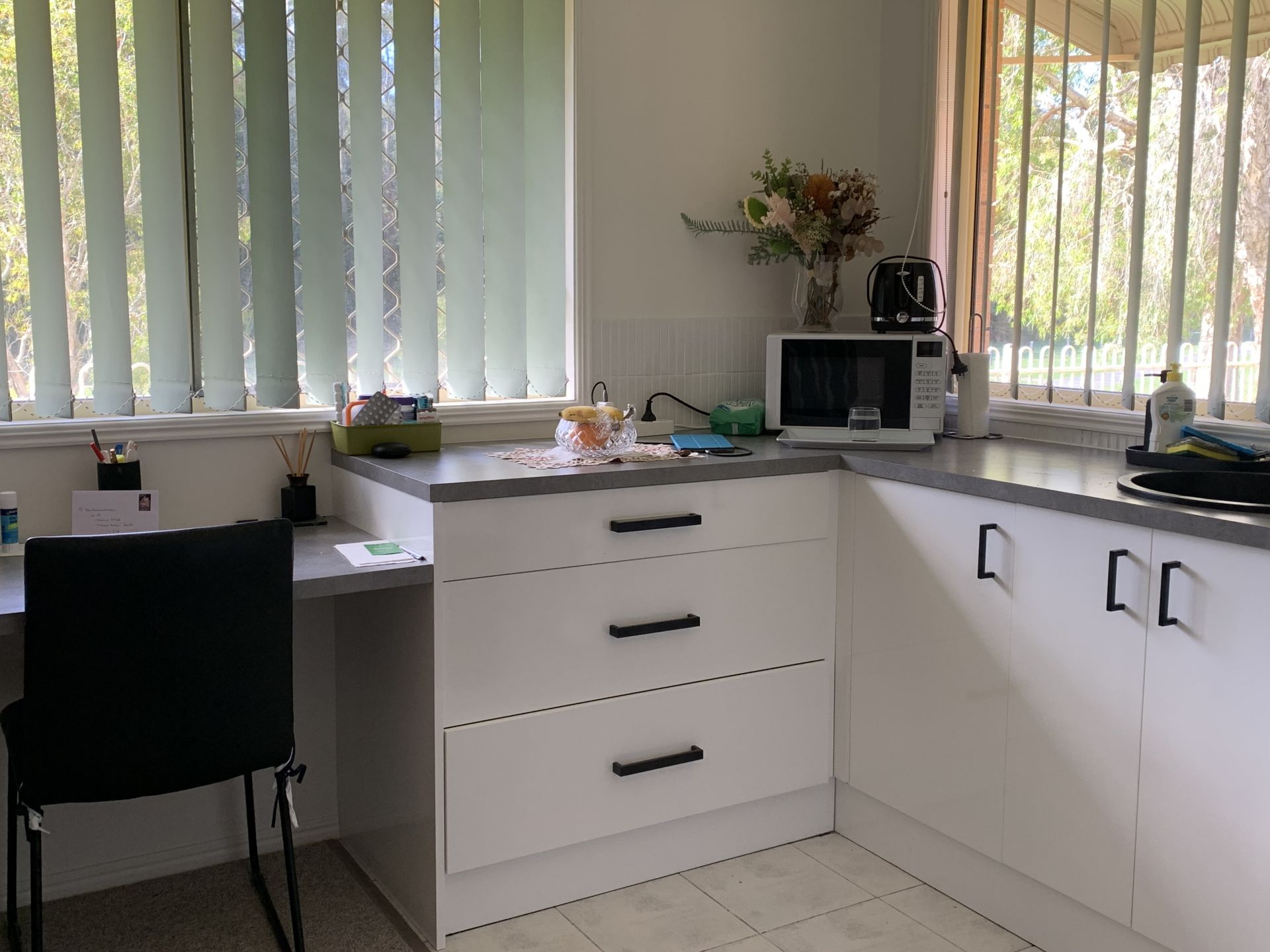 • Tiled, light filled modern kitchen
