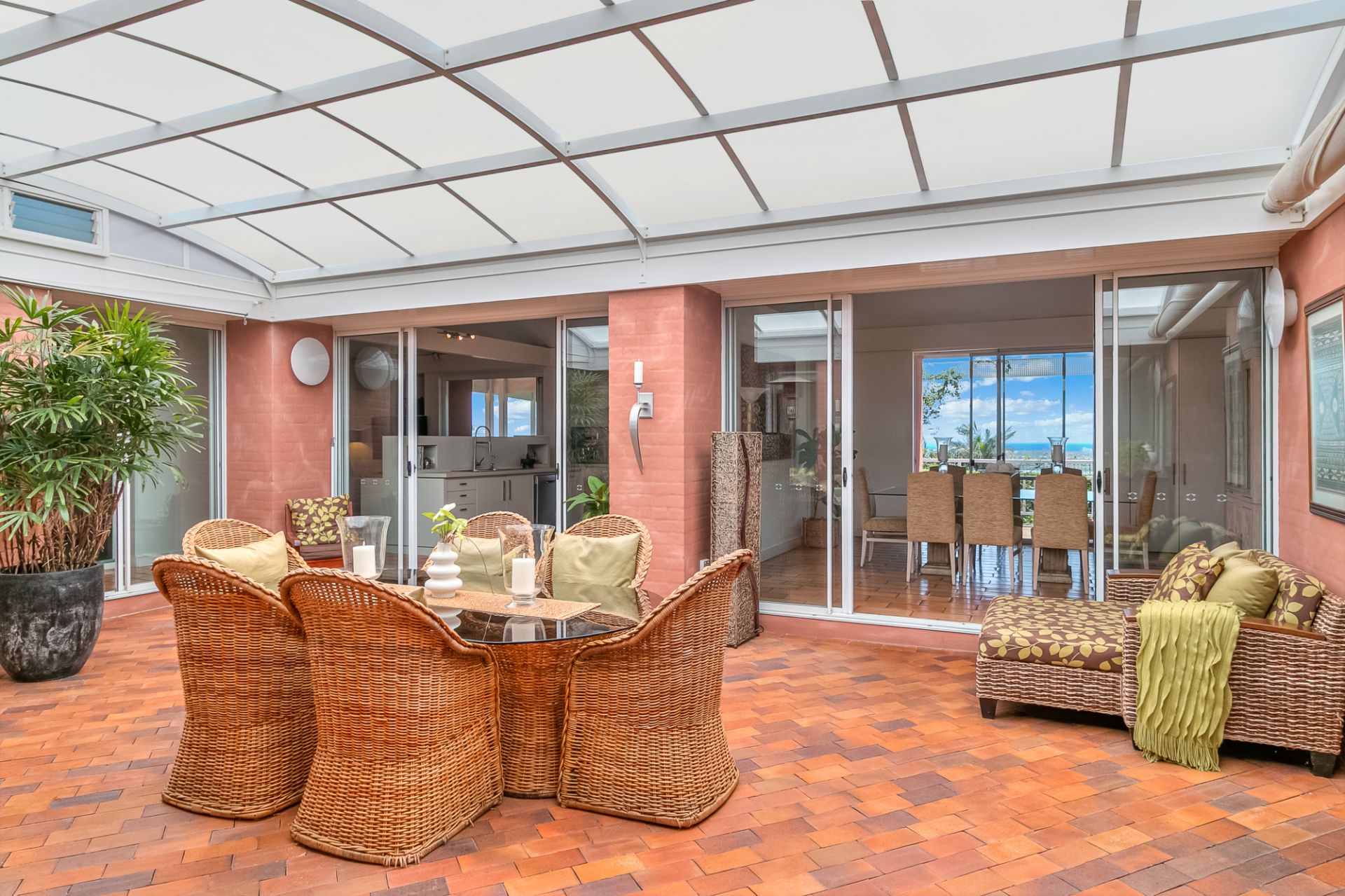 - Central light filled atrium style sunroom