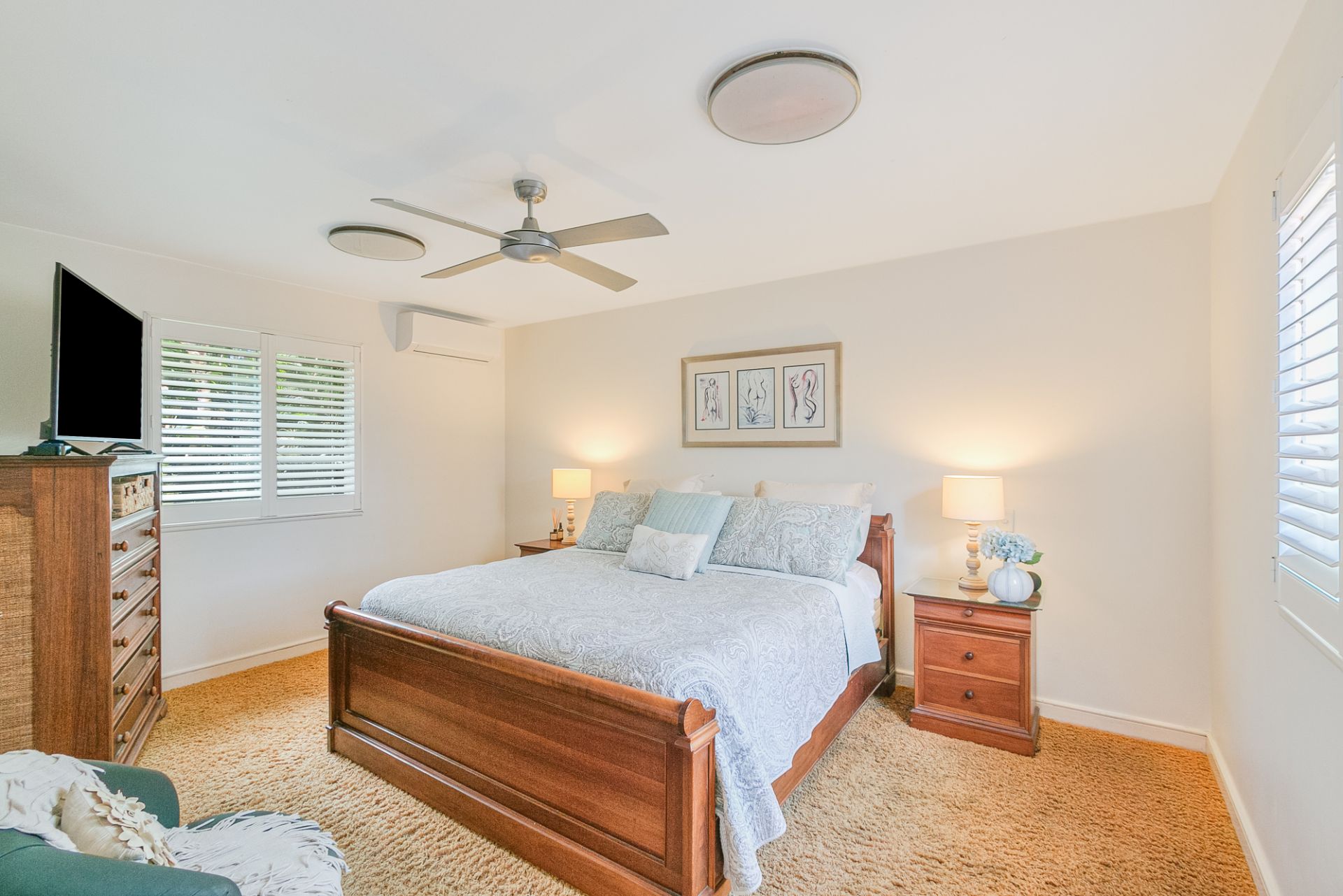 - Master bedroom w/ air-conditioning, built in robes & ensuite