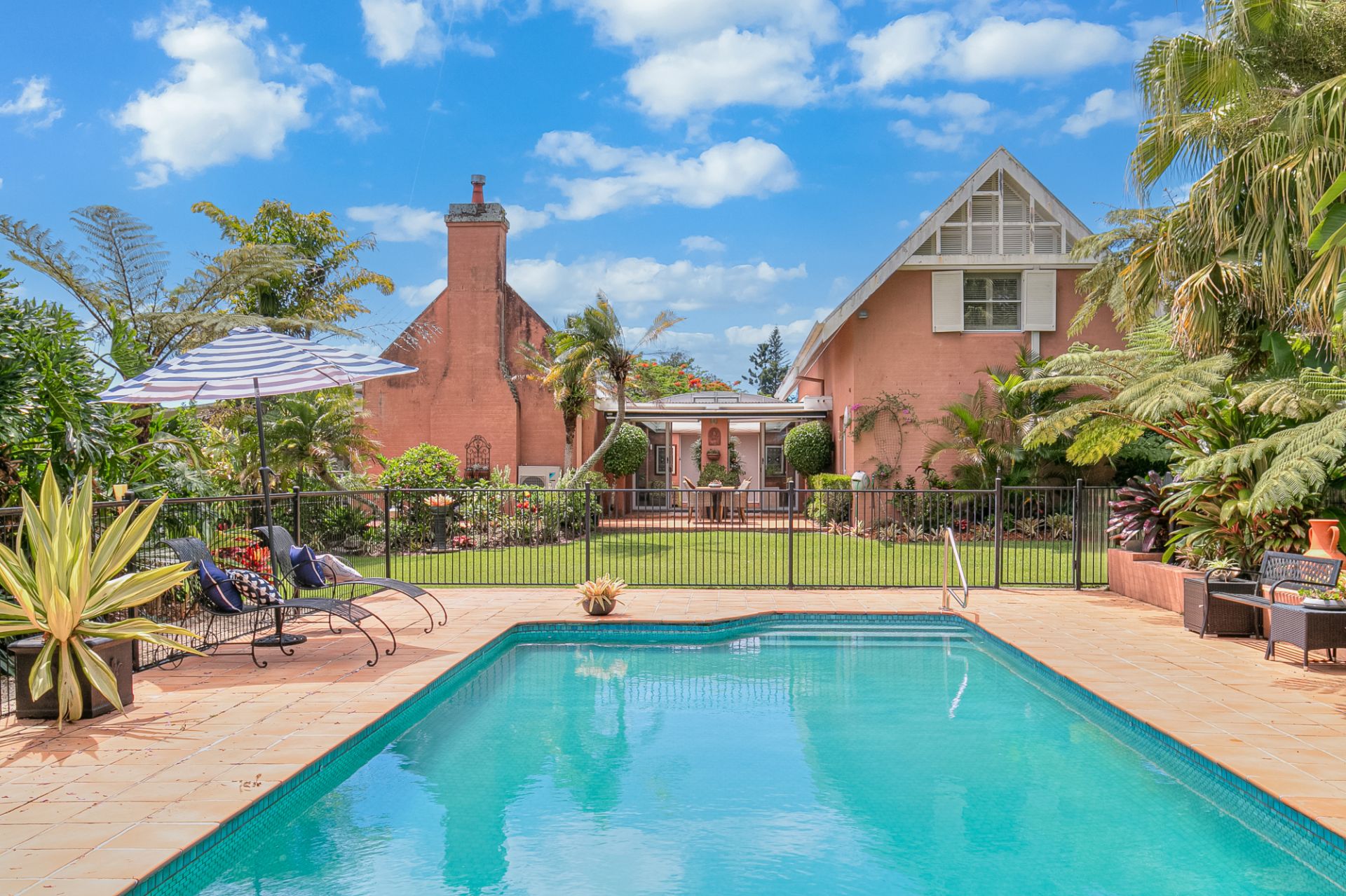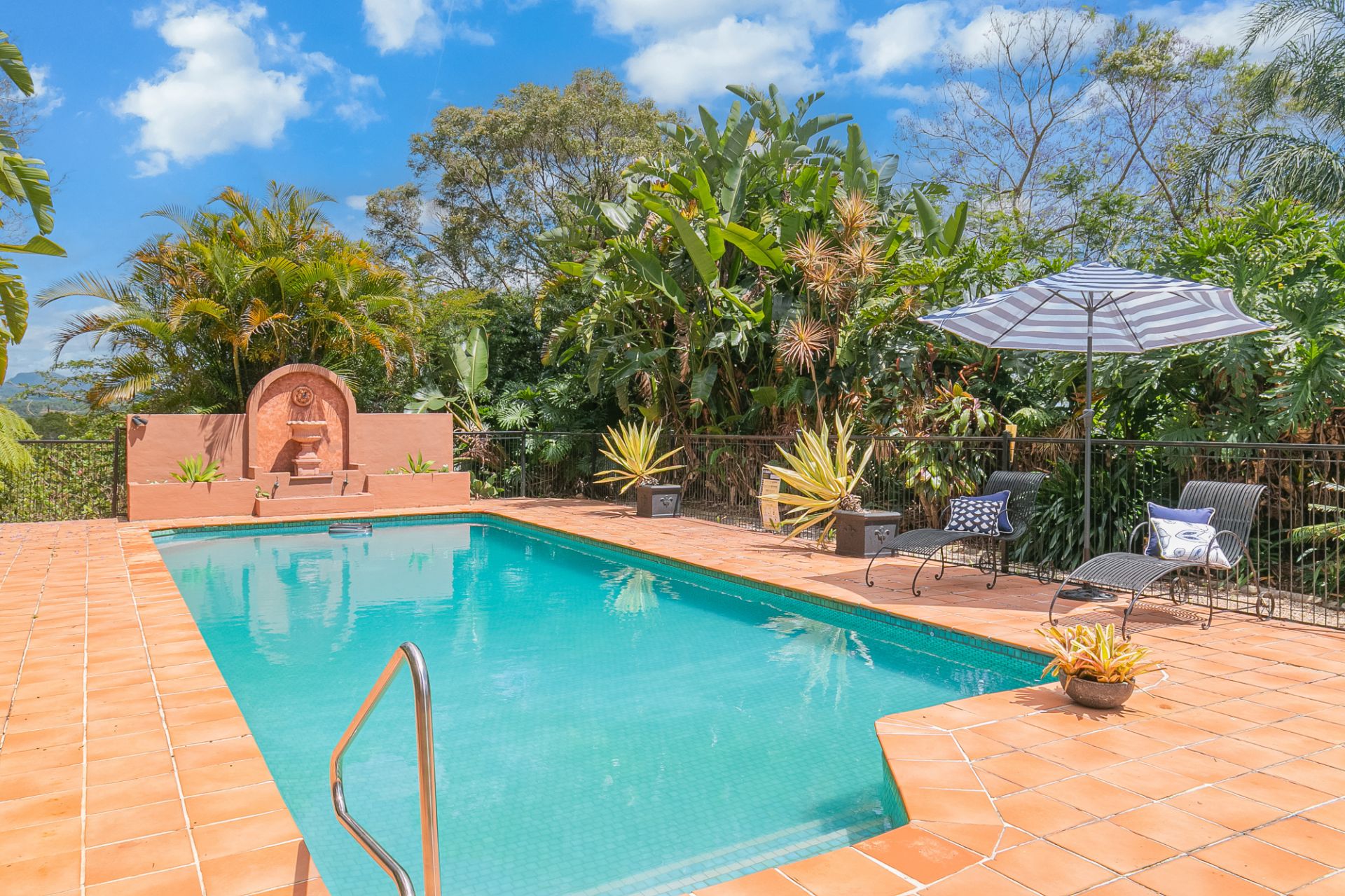 - Superb fully tiled roman style in-ground swimming pool w/ large, enclosed bathing areas