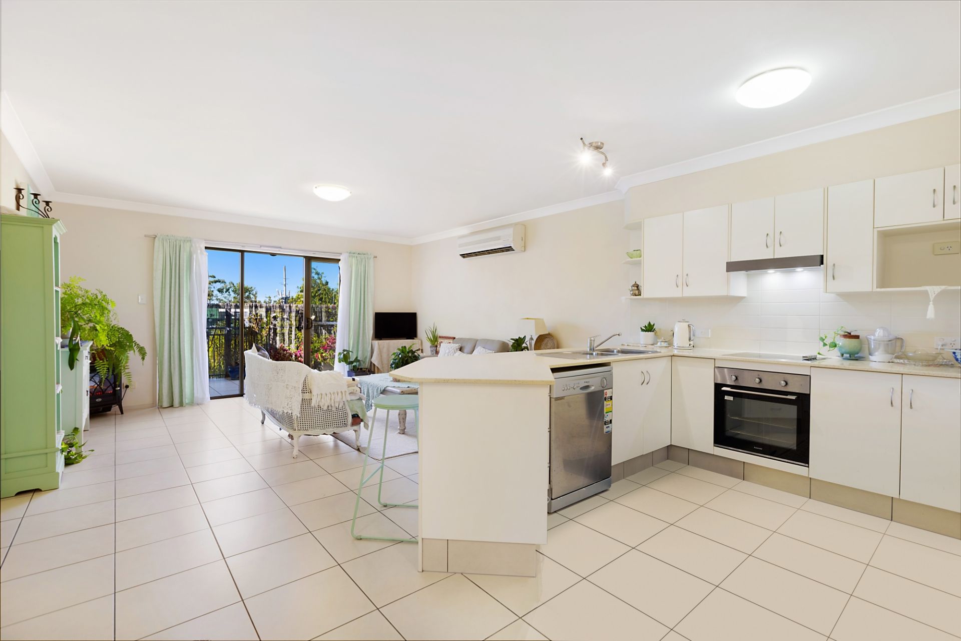 - Spacious open plan air-conditioned living w/ dining zone & tiled flooring