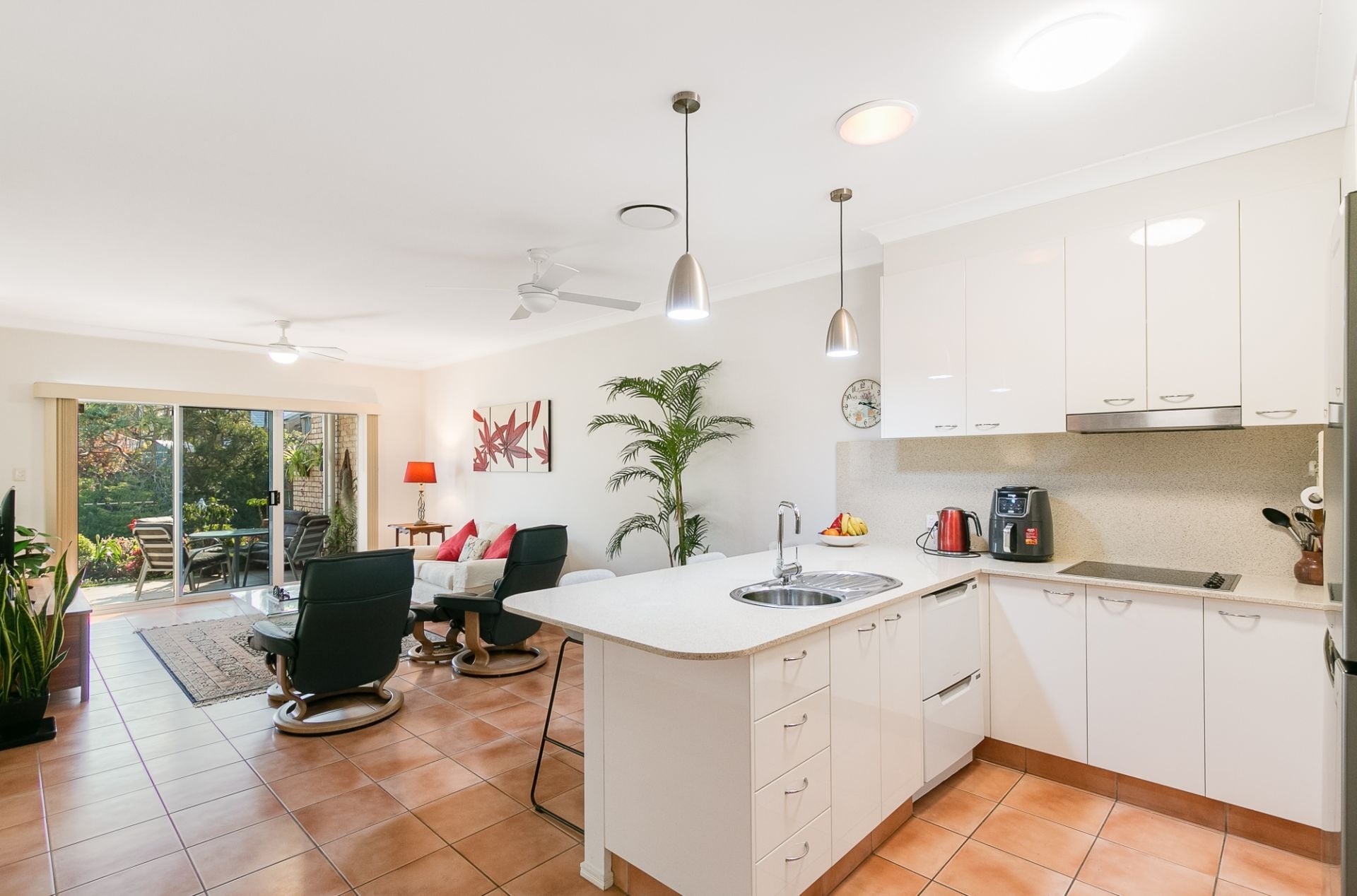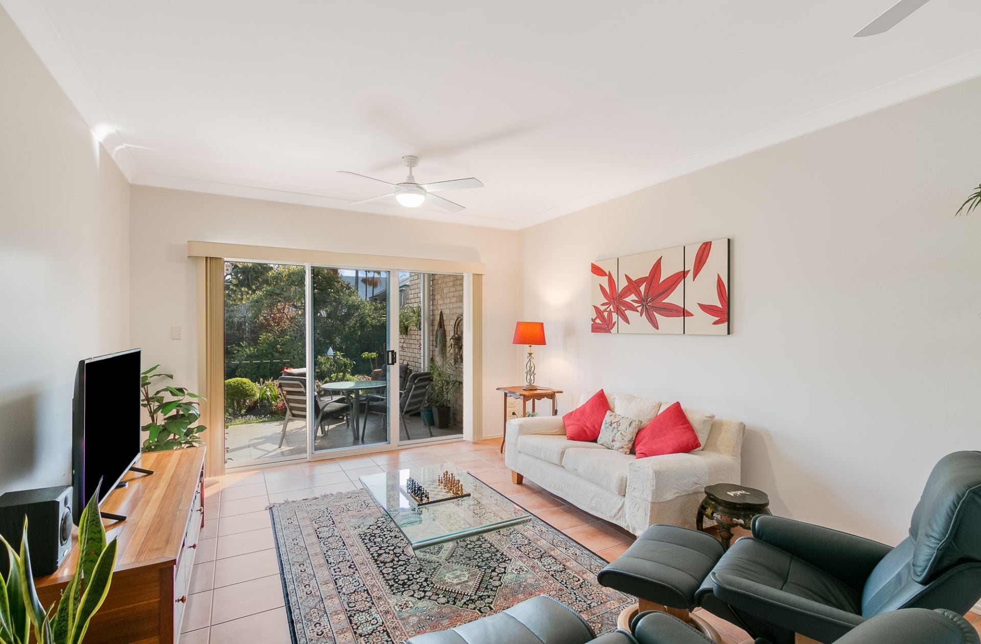 - Spacious tiled living area