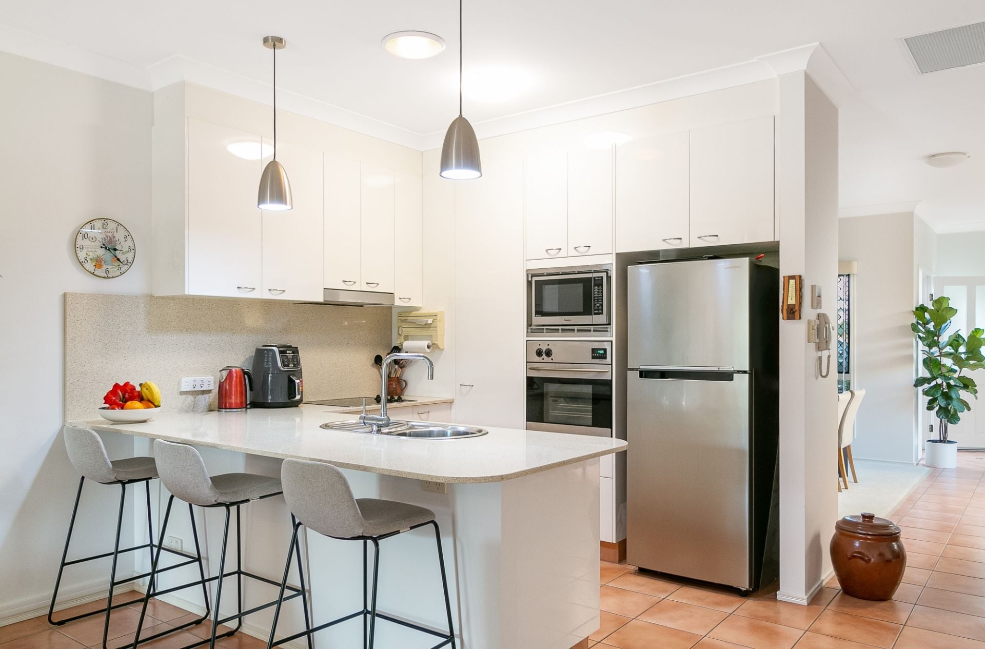 - Well-appointed kitchen w/ double dish drawer dishwasher, microwave, stone benches & two-pac cabinetry
