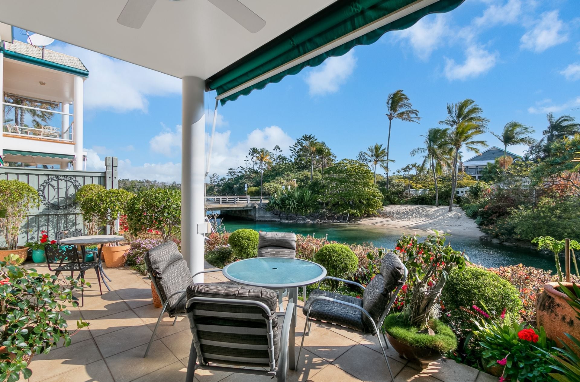 - Waterfront garden terrace w/ sun blinds & direct access to tranquil swimming areas