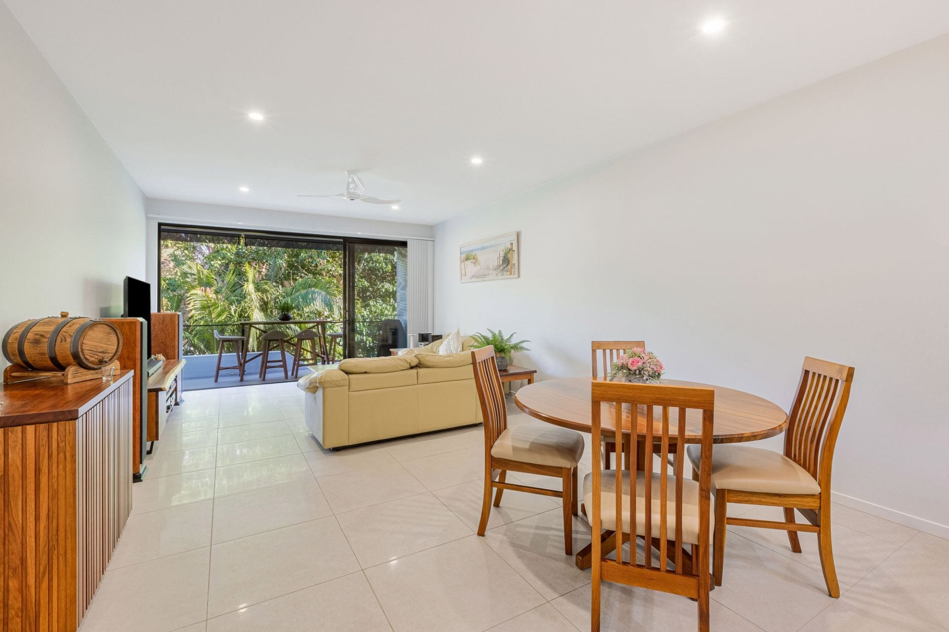 - Spacious open plan living w/ cool tiled flooring
