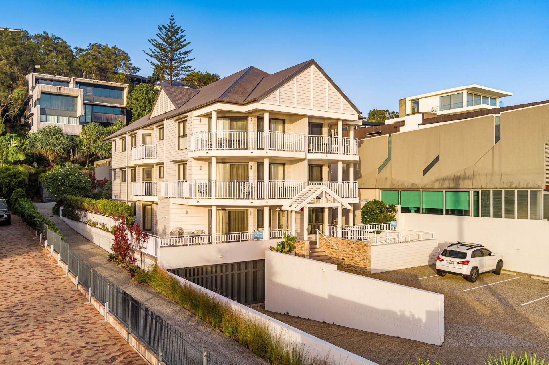 - Six fully modernised furnished 3-bedroom apartments, 2 per level, featuring ensuites & commanding superb ocean views.