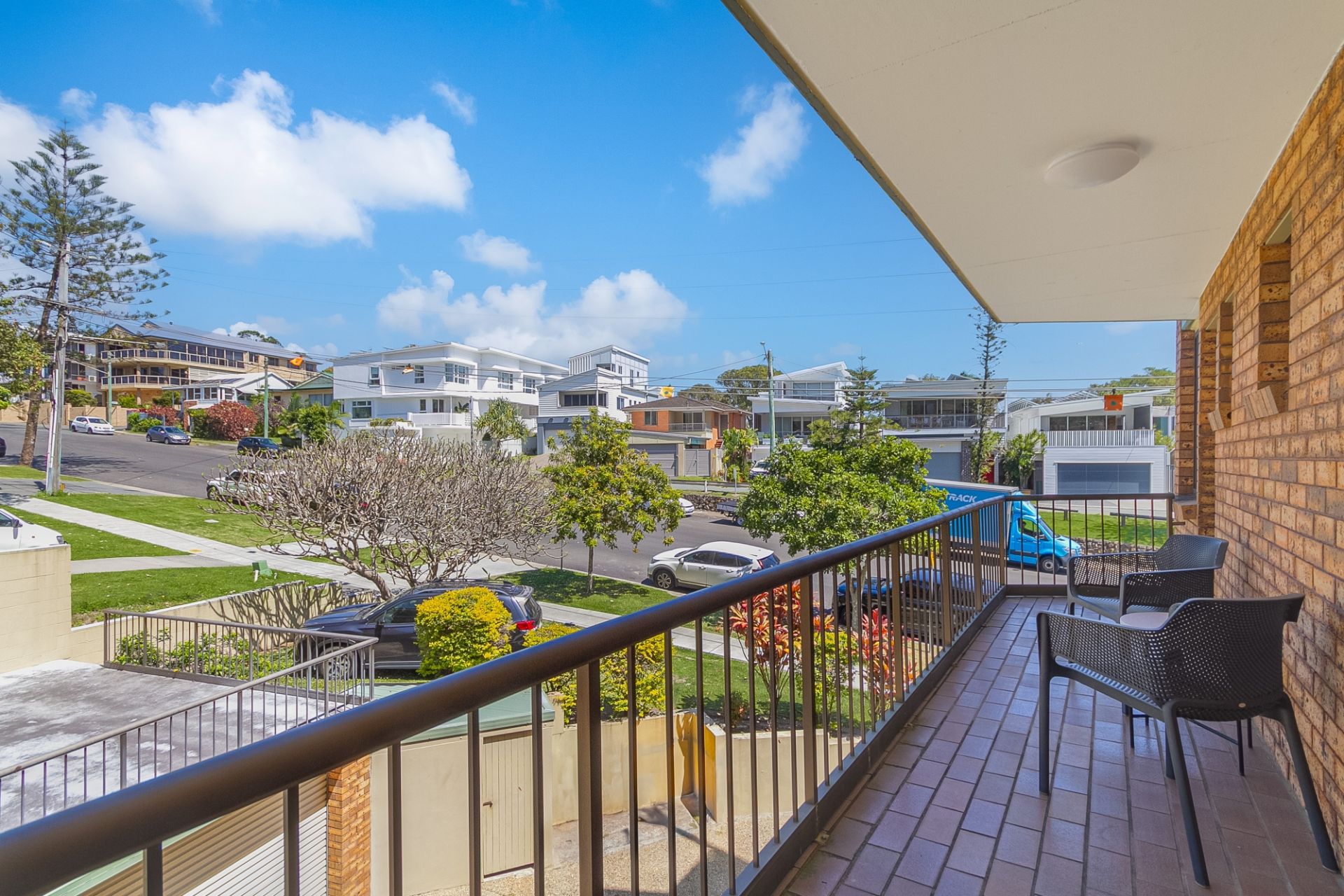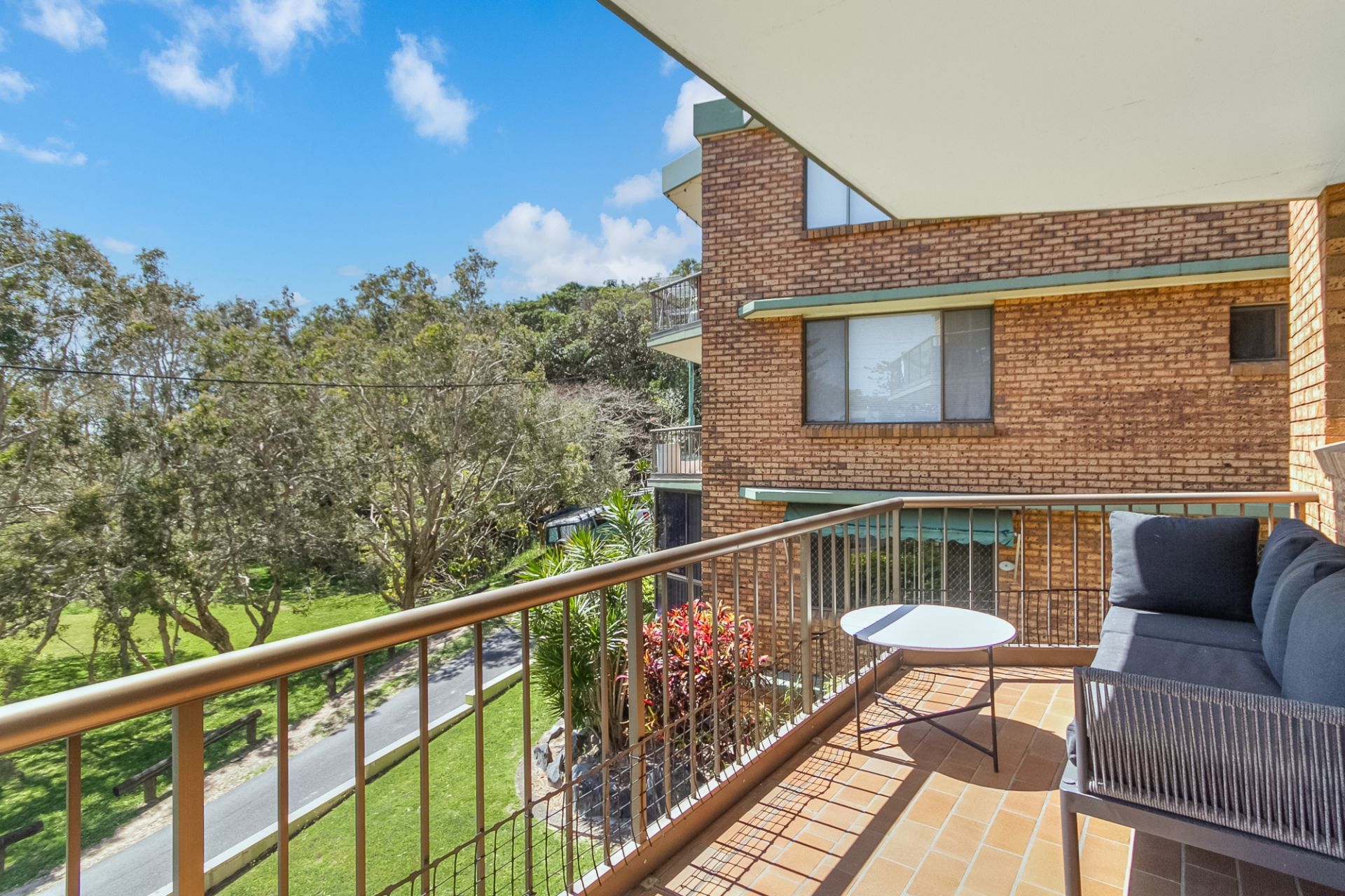 - Sunny balcony overlooking parkland