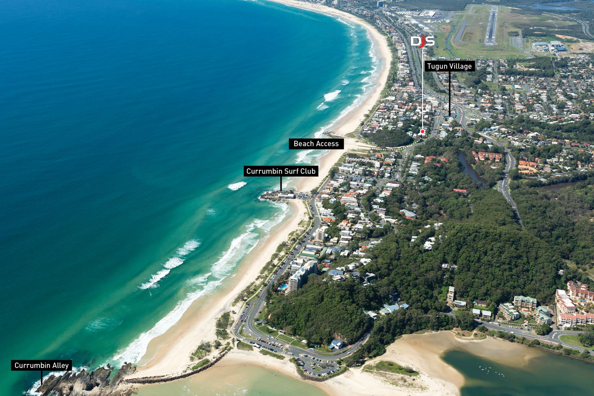 The Gold Coast International Airport, Southern Cross Uni & John Flynn Hospital are within 5 minutes, as too major shopping at the Pines Elanora or The Strand at Coolangatta.